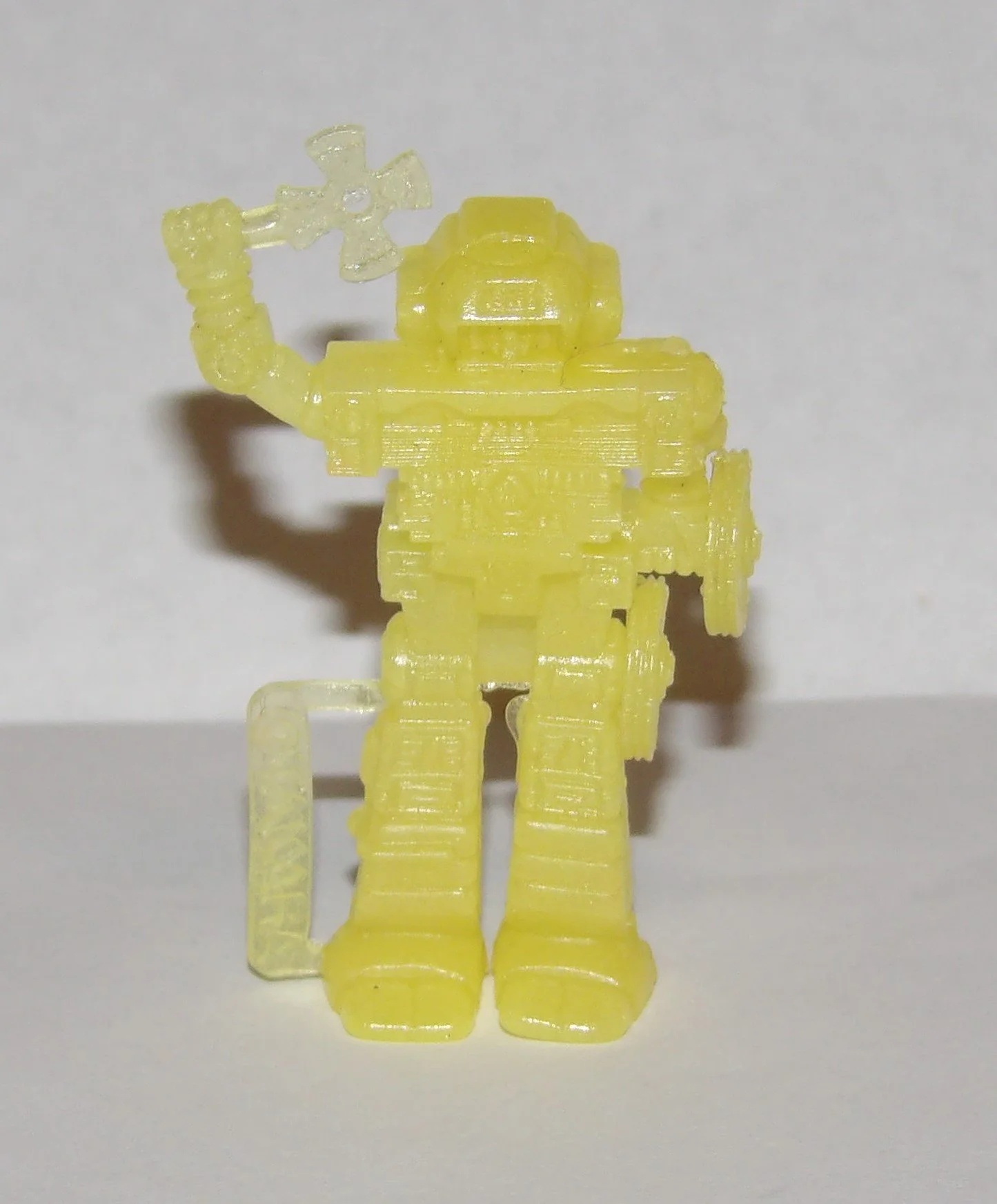 This series of figures were rubber stamps that came molded onto a small square stand that had the figure's face on the bottom and their name along the edge of the bottom stand. As with the other early Kayaba keshi figures, these are hard to find. The following list is thought to be complete but these are so rare it is not known if this is a truly complete list! These were released in two waves and the colors blue, red, and yellow.